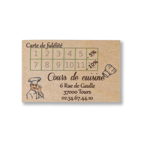 En impression couleurs, nos cartes de fidélité sont entièrement personnalisables selon vos envies.