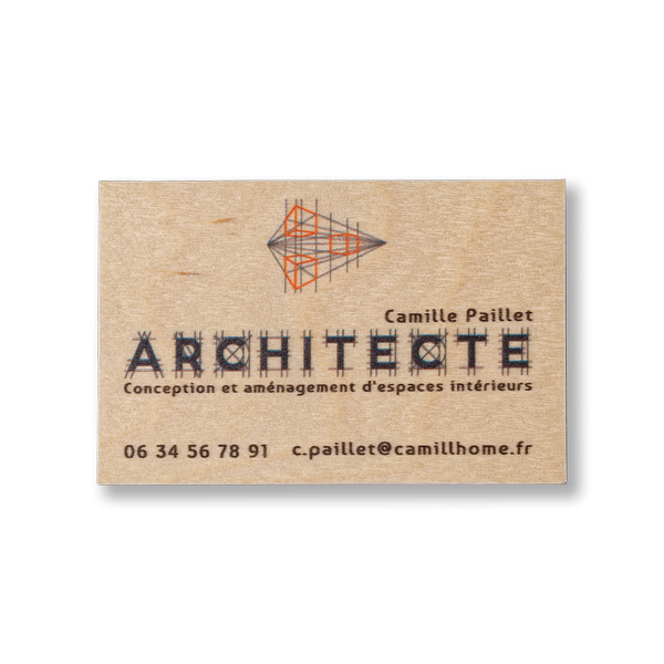 Réalisées à partir de bois massif de grande qualité, (certifié PEFC et/ou FSC), nos cartes de visite, d’une épaisseur inférieur à 1 mm, sont très résistantes et véhiculeront la plus belle image pour mettre en valeur votre travail et vous démarquer de la concurrence.