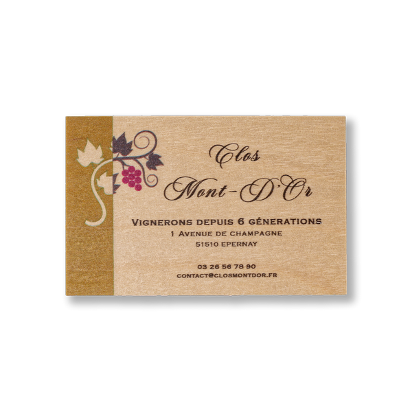 La carte de visite en bois, c’est plus qu’un support : c’est une signature visuelle et sensorielle. Elle interpelle, elle se garde, elle se montre. Une option aimantée est également disponible.